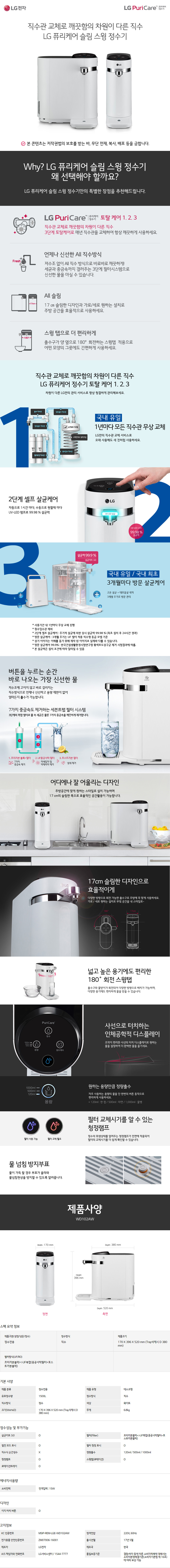 LG 퓨리케어 All 직수 슬림 스윙2 정수기 WD102AW